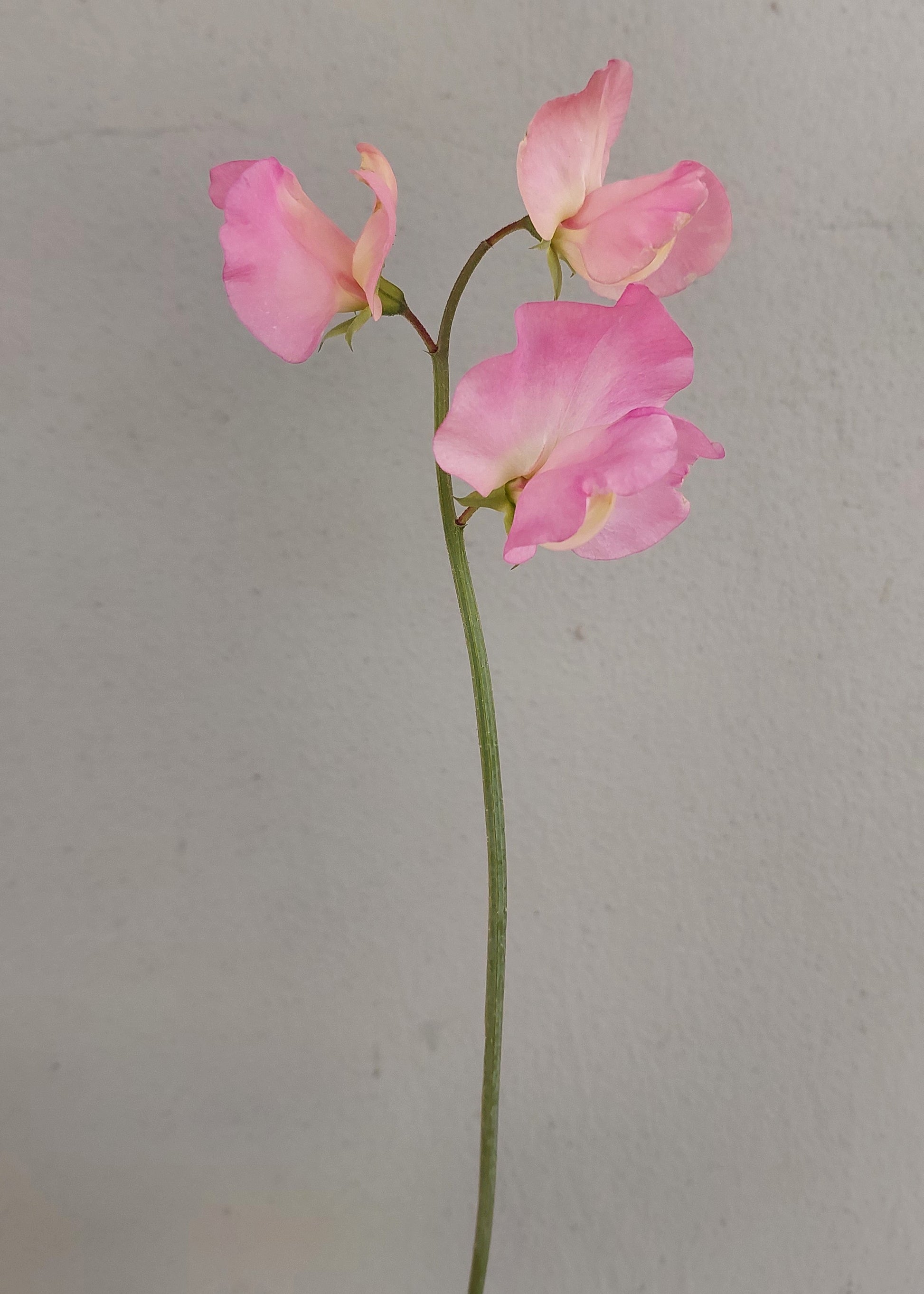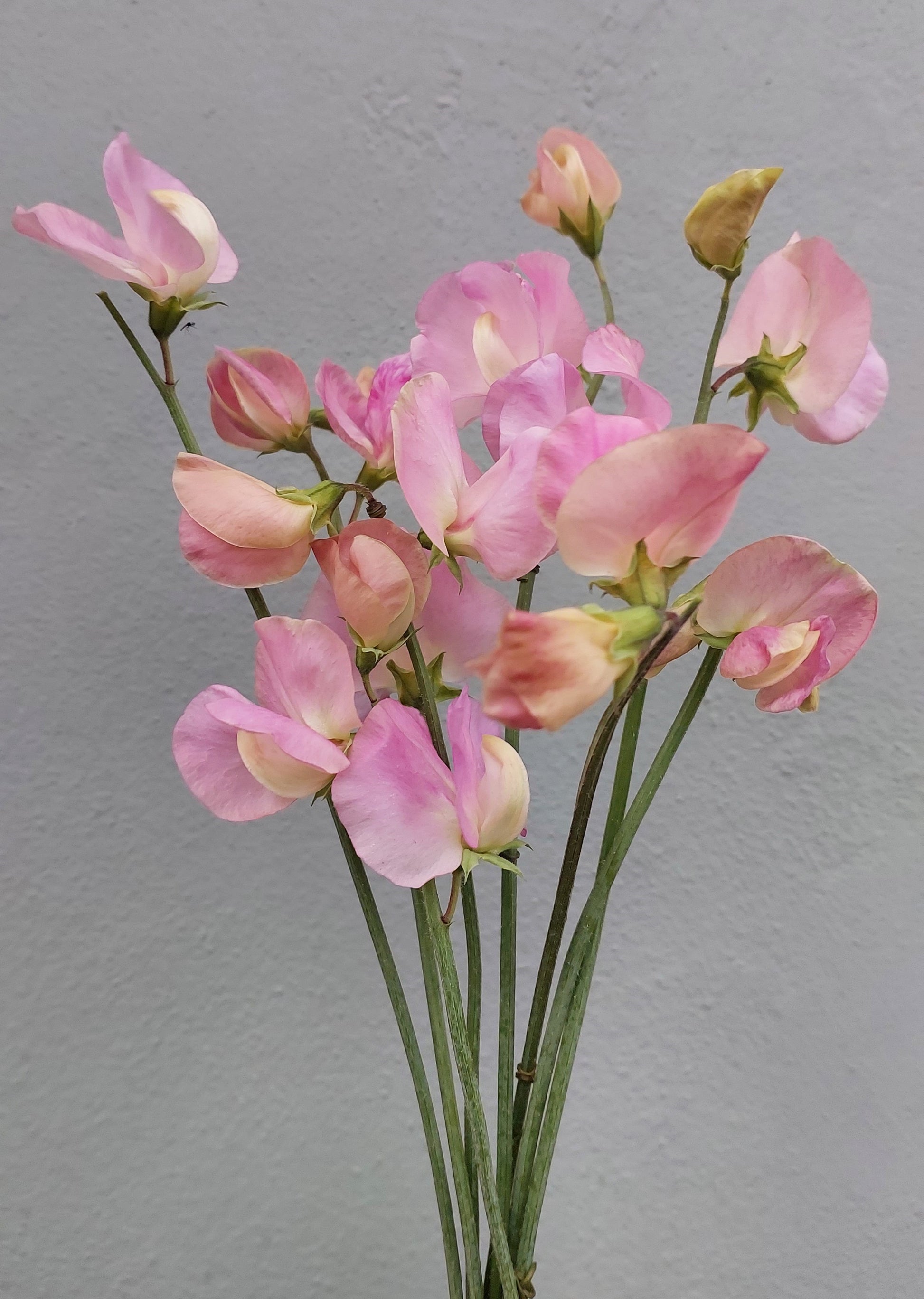A jar of sweet peas is a beautiful statement alone for a desk, bedside table or centrepiece